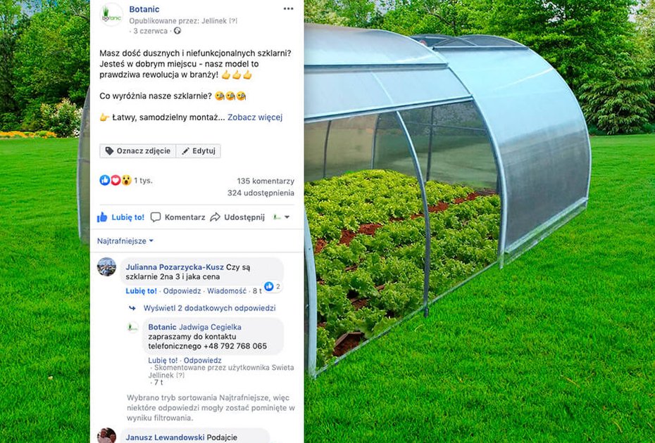 Działania podjęte przez Agencję przełożyły się na doskonałe wyniki sprzedażowe. Po 2 miesiącach kampanii mieliśmy już 347 zapytań o nasze produkty i ich cenę. Z kolei na Facebooku nastąpił ogromny wzrost zainteresowania naszą ofertą.