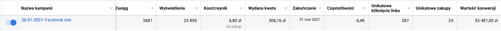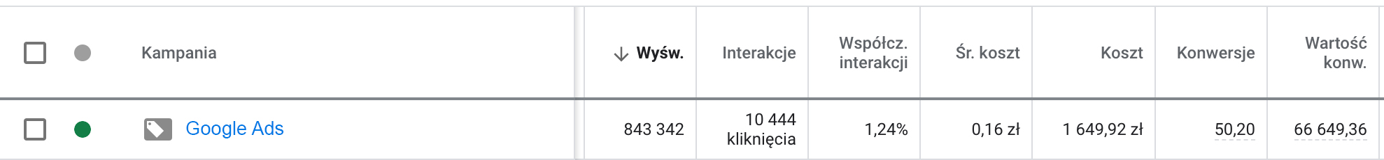 - Średni koszt konwersji 0,16 zł