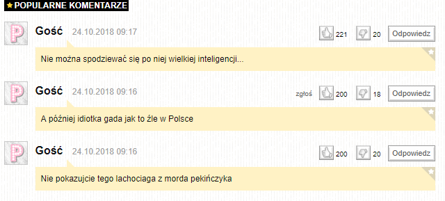 Przykładem mogą być komentarze na jednym z polskich portali o tematyce rozrywkowej. Temat dotyczył celebrytki Natalii Siwiec, która nie poszła na tegoroczne wybory.